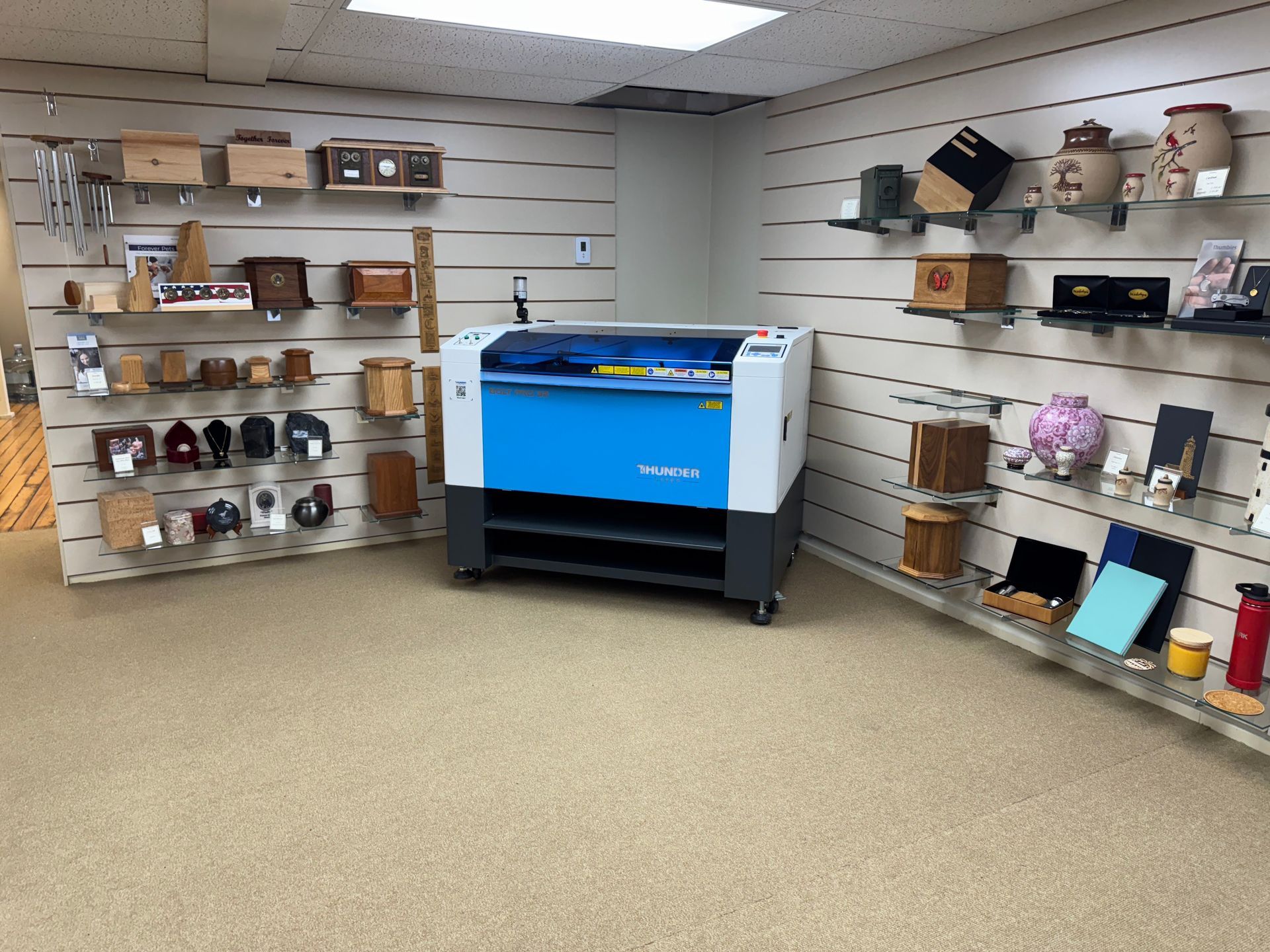 Our engraving equipment is located within the funeral home, with our primary unit in the family room. This allows you to be part of the process - seeing your design come to life and ensuring every detail feels just right.